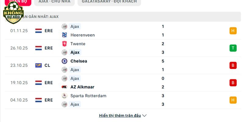 Phong độ Ajax vs Galatasaray