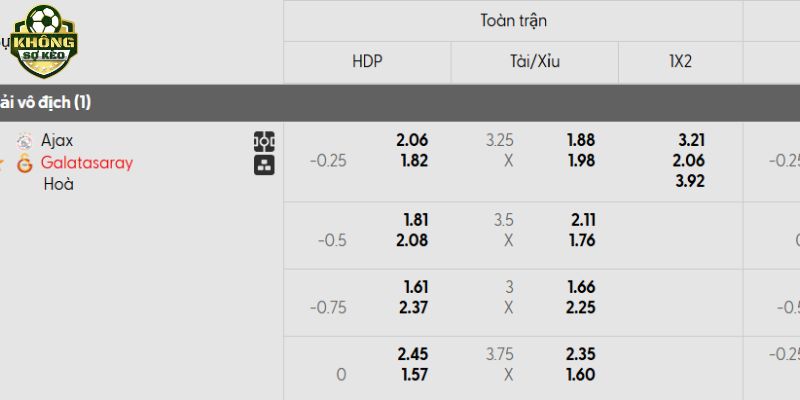 Tỷ lệ kèo Ajax vs Galatasaray