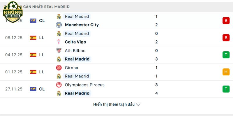 Real Madrid đang trải qua một trong những giai đoạn tồi tệ nhất dưới thời Xabi Alonso. Hai thất bại liên tiếp trên sân nhà (trước Celta Vigo và Man City) đã khiến họ tụt lại phía sau Barcelona 4 điểm. Sự lo lắng không chỉ đến từ kết quả mà còn từ màn trình diễn thiếu sức sống và sự lạnh lùng trong lối chơi. Việc chỉ thắng 2 trong 8 trận gần nhất trên mọi đấu trường là báo động đỏ.