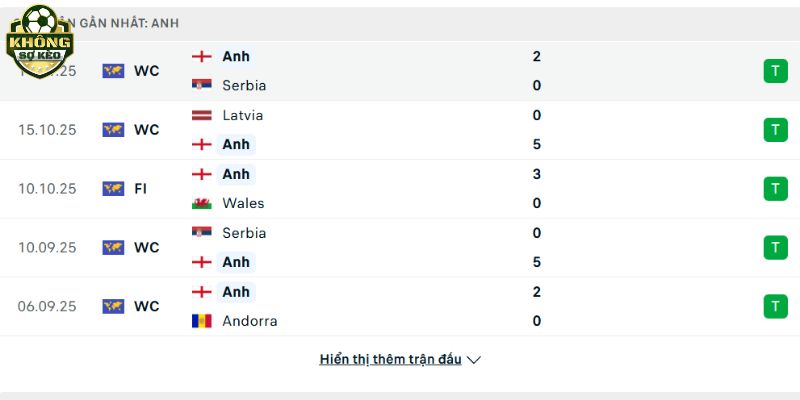 Lịch sử đối đầu là bằng chứng rõ ràng nhất về sự chênh lệch đẳng cấp giữa Albania vs Anh. Trong 7 lần đối đầu, Anh đã thắng tuyệt đối cả 7 trận, ghi 21 bàn và chỉ để Albania ghi được một bàn danh dự duy nhất. Thành tích áp đảo này tạo ra lợi thế tâm lý rất lớn cho đội khách và là rào cản tâm lý cực lớn cho Albania, mặc dù họ đang có phong độ tốt.