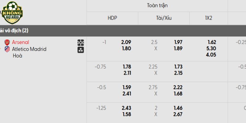 Tỷ lệ kèo Arsenal vs Atletico Madrid