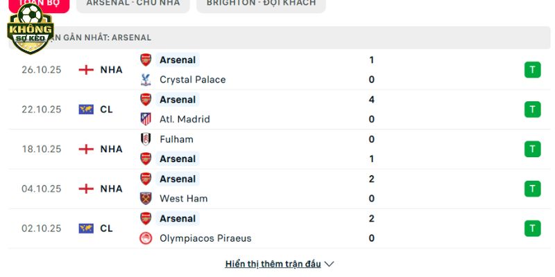 Arsenal đang sở hữu chiều sâu đội hình đáng kinh ngạc, đặt họ vào vị trí cực kỳ mạnh mẽ để thách thức những danh hiệu giữa mùa giải. Tuy nhiên, họ sẽ phải đối mặt với Brighton đầy bí ẩn, đội bóng vừa tạo nên hai kỷ lục ghi bàn kinh hoàng tại EFL Cup. Hãy phân tích cuộc so tài Arsenal vs Brighton cùng Không Sợ Kèo!