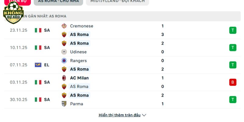 Trận đấu giữa AS Roma vs FC Midtjylland là một trong những cuộc đối đầu hấp dẫn và cân bằng nhất. Roma phải đối mặt với áp lực tâm lý cực lớn sau những kết quả thất vọng trên sân nhà Stadio Olimpico. Trong khi đó, FC Midtjylland hành quân đến Rome với tư cách là đội duy nhất giữ được thành tích toàn thắng tuyệt đối tại Europa League mùa này. Dưới đây là phân tích chi tiết từ Không Sợ Kèo!