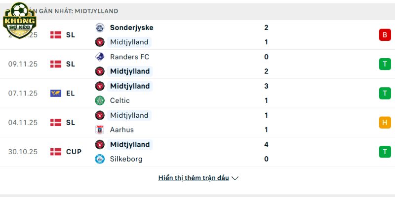 FC Midtjylland bước vào trận đấu với phong độ hoàn hảo tại Europa League: 4 trận, 4 chiến thắng. Đây là thành tích đáng kinh ngạc, cho thấy họ là đội bóng được tổ chức tốt, có khả năng tận dụng triệt để cơ hội và đặc biệt nguy hiểm từ các tình huống cố định. Việc họ dẫn đầu về số bàn thắng cùng cú sút trúng đích phản ánh lối chơi tấn công trực diện không ngại rủi ro của HLV Mike Tullberg.