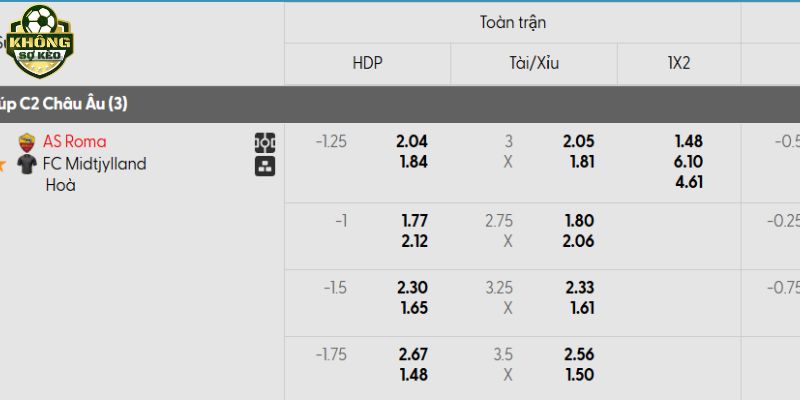 Tỷ lệ kèo AS Roma vs FC Midtjylland