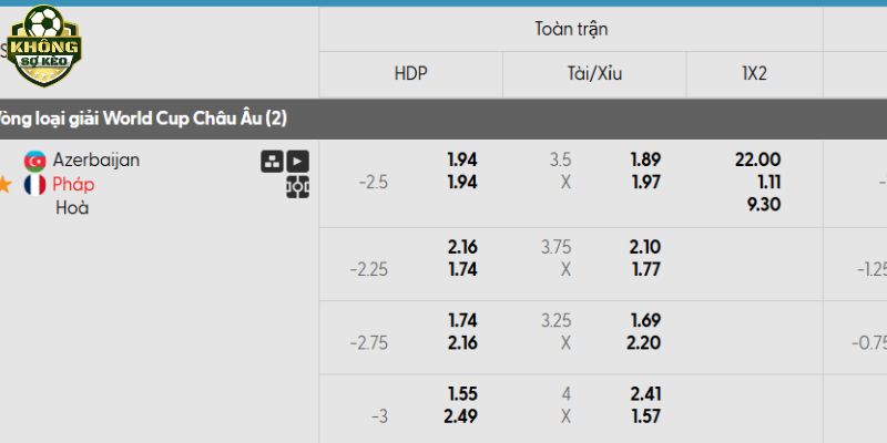 Tỷ lệ kèo Azerbaijan vs Pháp