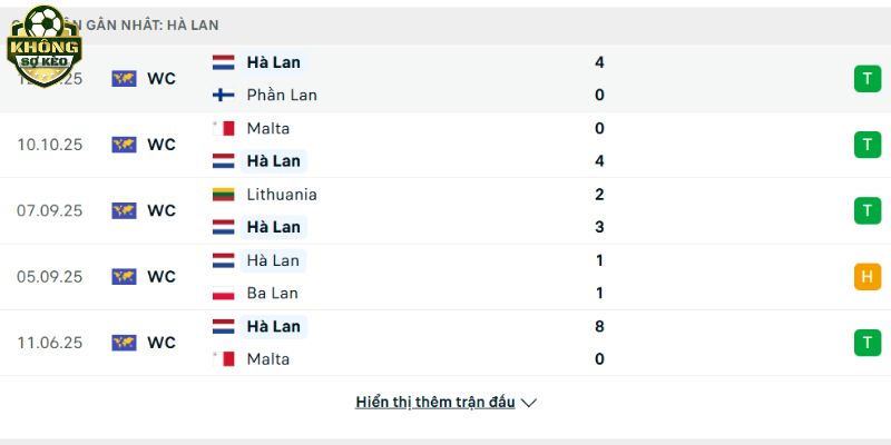 Đội khách đang có phong độ cao (thắng 4/5 trận gần nhất) và là đội duy nhất còn bất bại trong bảng đấu. Hà Lan có động lực rõ ràng là giành vé đi tiếp ngay lập tức. Với sức tấn công mạnh mẽ (ghi trung bình 3.67 bàn/trận) và sự chắc chắn của Van Dijk, họ hoàn toàn có khả năng thắng cách biệt tối thiểu. Tỷ lệ thắng kèo của Hà Lan trong 5 trận gần nhất là 60%.