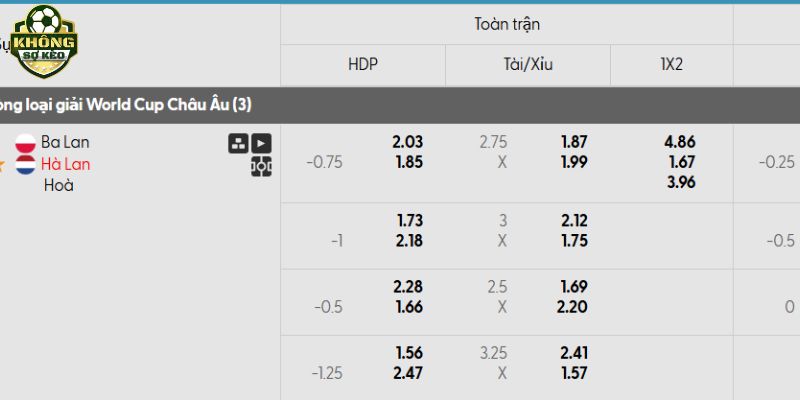 Tỷ lệ kèo Ba Lan vs Hà Lan