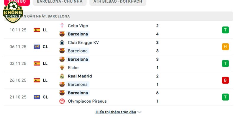 Barcelona ghi 32 bàn (cao nhất giải) và thủng lưới 15 bàn. Chuỗi 10 trận không giữ sạch lưới cho thấy khả năng cả hai đội cùng ghi bàn (BTTS) là rất cao. Ngược lại Athletic Bilbao ghi 6 bàn trong 5 trận gần nhất và cần phải chơi mạo hiểm để tìm kiếm điểm số, điều này sẽ mở ra khoảng trống cho Barça.