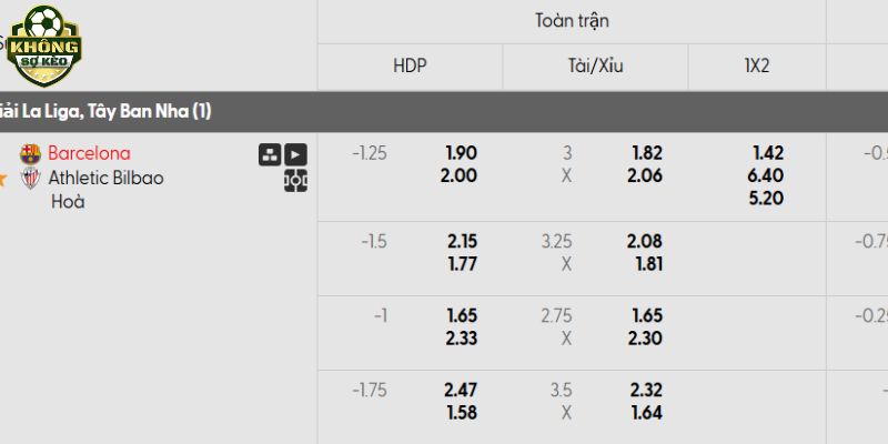 Tỷ lệ kèo Barcelona vs Athletic Bilbao