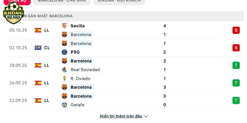Phong độ Barcelona vs Girona