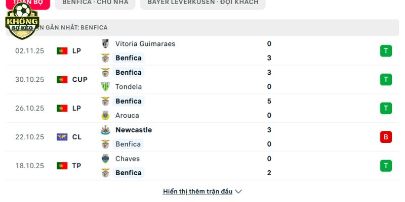 Phong độ Benfica vs Bayer Leverkusen