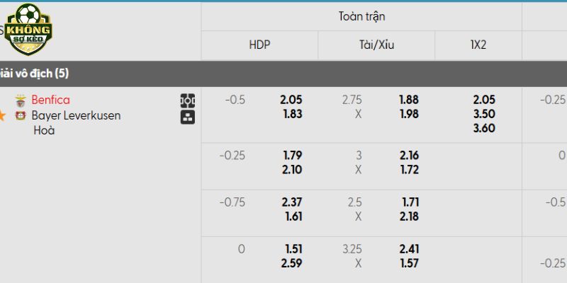 Tỷ lệ kèo Benfica vs Bayer Leverkusen