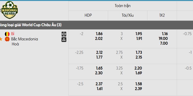 Tỷ lệ kèo Bỉ vs Bắc Macedonia