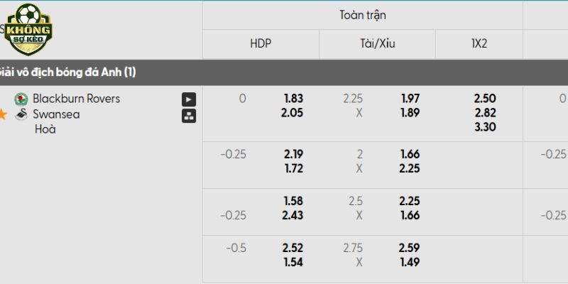 Tỷ lệ kèo Blackburn Rovers vs Swansea City