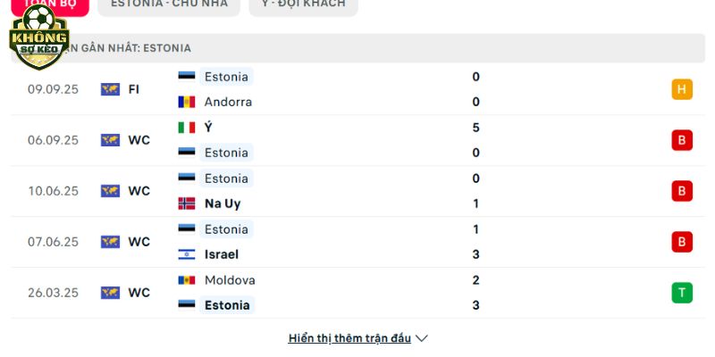 Italia có thành tích đối đầu vượt trội so với Estonia, thể hiện rõ qua chiến thắng 5-0 ngay ở trận lượt đi vòng loại này. Trong các lần đối đầu trước đây, Italia luôn kiểm soát thế trận và giành chiến thắng với tỷ số cách biệt. Điều đó phản ánh rõ sự khác biệt về đẳng cấp giữa đội bóng Top 10 thế giới và đội bóng ngoài Top 120.
