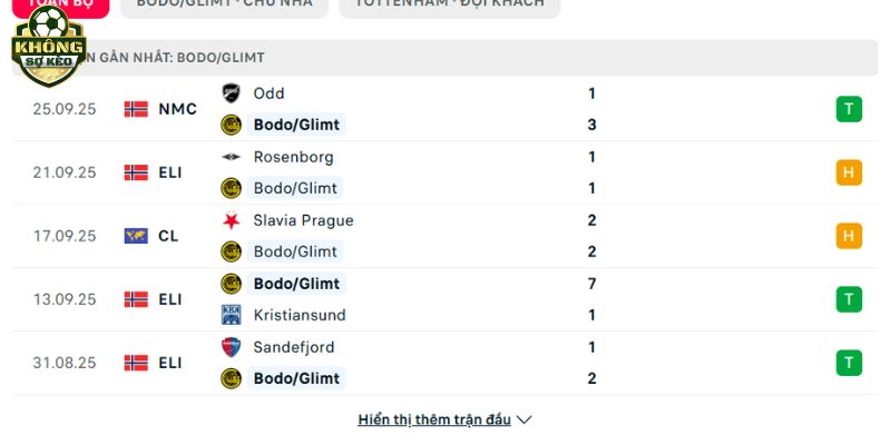 Thành tích đối đầu gần đây giữa Bodo/Glimt vs Tottenham rõ ràng nghiêng hẳn về phía đội bóng đến từ Bắc London. Đây là một yếu tố tâm lý lớn mà Bodo/Glimt cần phải vượt qua.