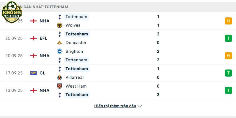 Phong độ Tottenham Hotspur