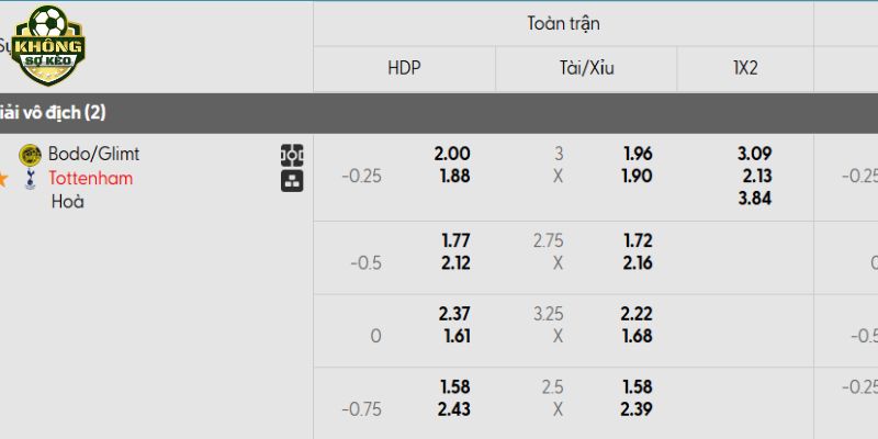 Việc Tottenham phải làm khách tại một nơi xa xôi và lạnh giá như Bodo, cùng với trận hòa thất vọng trước Wolves, có thể khiến tỷ lệ chấp không quá cao. Tuy nhiên, dựa trên sự khác biệt về chất lượng đội hình, kinh nghiệm thi đấu ở Champions League, đặc biệt là thành tích đối đầu tuyệt đối, Tottenham vẫn là lựa chọn sáng giá ở kèo Châu Á.
