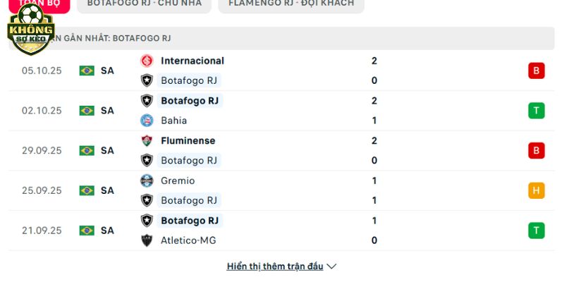 Phong độ Botafogo vs Flamengo