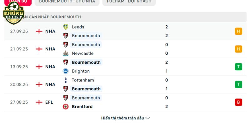 Phong độ Bournemouth vs Fulham