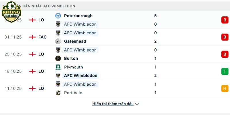 AFC Wimbledon bước vào trận đấu quyết định này với mục tiêu rõ ràng: chỉ cần tránh thất bại là có thể đảm bảo vị trí trong vòng 1/32. Tuy nhiên, họ lại đang trải qua giai đoạn khủng hoảng sâu sắc với 3 thất bại liên tiếp trên mọi đấu trường. Trong chuỗi trận tồi tệ này, đội bóng của HLV Johnnie Jackson đã thủng lưới tới 8 bàn và không ghi được bất kỳ bàn thắng nào. Đỉnh điểm của sự thất vọng là trận thua tan tác 5-0 trước Peterborough United.