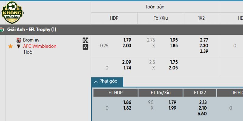 Tỷ lệ kèo Bromley vs AFC Wimbledon