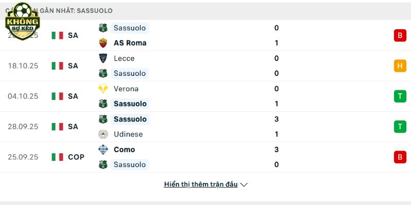 Phong độ Sassuolo