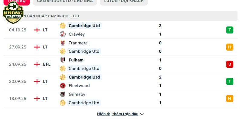 Luton thủng lưới 2+ bàn trong 4/5 trận. Hàng thủ này là điểm yếu lớn nhất. Ngược lại Cambridge ghi 10 bàn trong 5 trận sân nhà gần nhất. Họ biết cách làm rung lưới đối thủ tại tổ ấm. Cả hai đội sẽ chơi cởi mở hơn do đây không phải là trận đấu mang tính sinh tử ở giải VĐQG, tạo điều kiện cho các bàn thắng xuất hiện.
