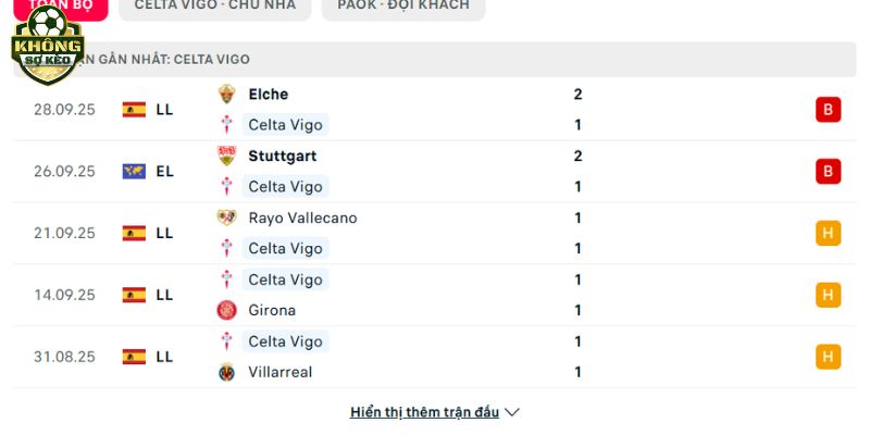 Phong độ Celta Vigo vs PAOK