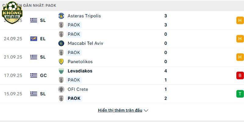 Phong độ PAOK