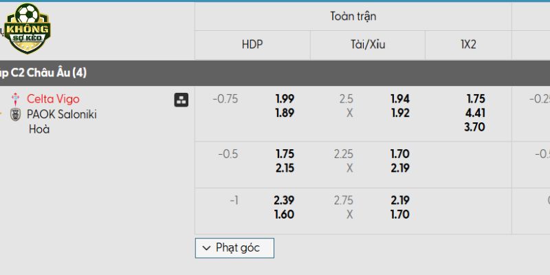 Việc PAOK hòa 3/4 trận gần nhất cho thấy họ dễ bị chia điểm khi đối đầu với những đội bóng có quyết tâm cao. Với việc Celta Vigo được trở lại Balaídos và khát khao chiến thắng bị dồn nén, họ sẽ chơi với 100% năng lượng. Dự đoán Celta Vigo sẽ tìm được chiến thắng tối thiểu để vượt qua kèo chấp.