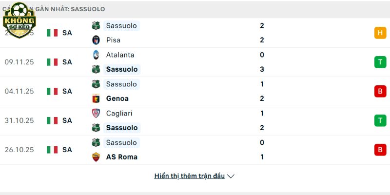 Sassuolo đang trình diễn phong độ không đồng đều. Một mặt, họ có thể hủy diệt Atalanta 3-0 ngay tại Bergamo, chứng minh khả năng đánh bại các đối thủ lớn và sự hiệu quả khi phản công trên sân khách. Mặt khác, việc phải cần đến bàn gỡ hòa phút cuối trước Pisa ngay trên sân nhà (hòa 2-2) lại cho thấy sự lỏng lẻo trong các trận đấu mà họ được kỳ vọng sẽ kiểm soát thế trận.