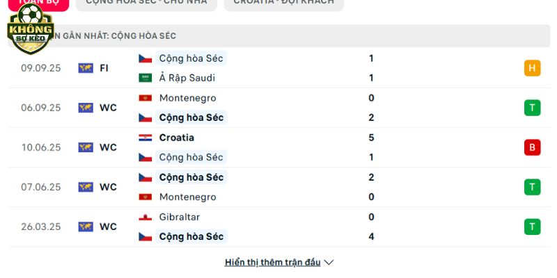 Phong độ Cộng Hòa Séc vs Croatia