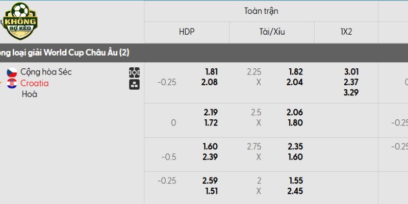 Tỷ lệ kèo Cộng Hòa Séc vs Croatia