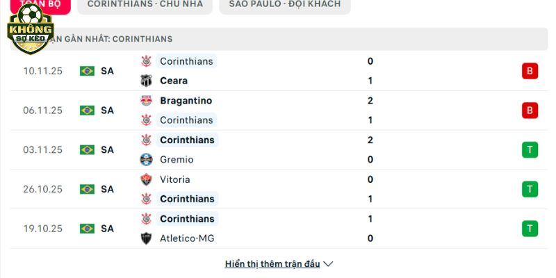 Phong độ Corinthians vs São Paulo