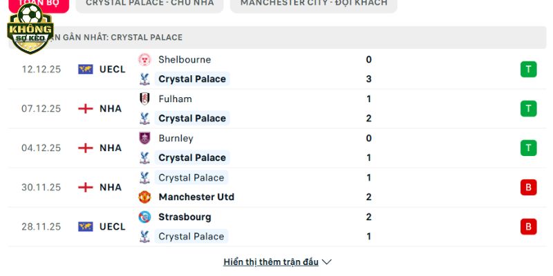 Crystal Palace đang có mùa giải Premier League thành công bất ngờ, nằm trong nhóm dự Champions League. Phong độ ấn tượng của họ chủ yếu đến từ các trận đấu sân khách (3 chiến thắng liên tiếp). Tuy nhiên, khi trở về Selhurst Park, Palace lại thường xuyên chia điểm. Điều này cho thấy họ có thể thiếu đi sự sắc bén cần thiết để chuyển hóa sự kiểm soát thành chiến thắng trên sân nhà.