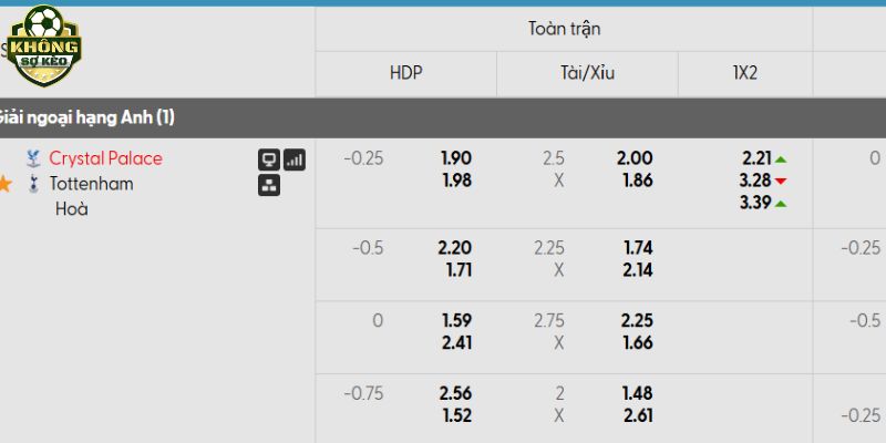Tỷ lệ kèo Crystal Palace vs Tottenham