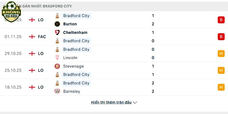 Thống kê lịch sử đối đầu giữa Doncaster Rovers vs Bradford City cho thấy sự kình địch kéo dài giữa hai đội bóng. Trong những lần đối đầu gần đây, Doncaster đang có ưu thế đáng kể, đặc biệt là trên sân nhà Eco-Power.