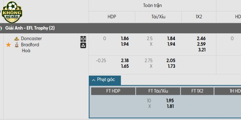 Tỷ lệ kèo Doncaster Rovers vs Bradford City