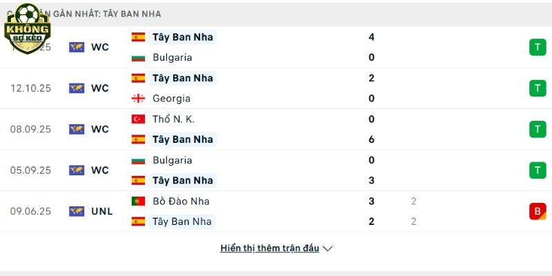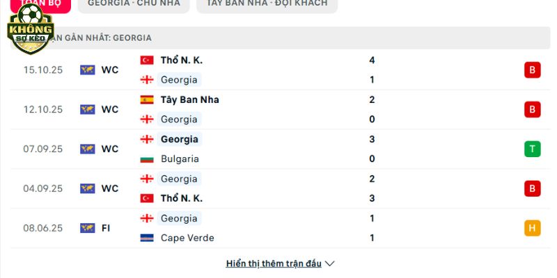 Thống kê cho thấy Tây Ban Nha đã ghi 19 bàn trong 5 lần chạm trán gần nhất (trung bình 3.8 bàn/trận) và đều giành chiến thắng trong các trận đấu chính thức. Điều này khẳng định sự áp đảo toàn diện của La Roja trước Georgia. Dù được thi đấu trên sân nhà, Georgia vẫn phải đối mặt với nhiệm vụ gần như bất khả thi.