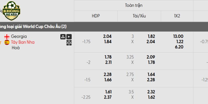 Tỷ lệ kèo Georgia vs Tây Ban Nha