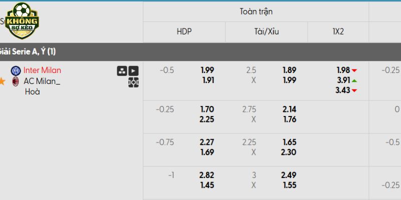 Tỷ lệ kèo Inter Milan vs AC Milan