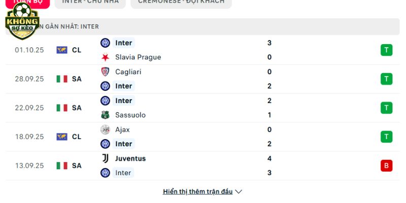 Chuỗi trận bất bại của Cremonese cuối cùng cũng sẽ kết thúc khi Inter đang có đà tiến triển và rất khó bị ngăn cản ngay trên sân nhà. Đang bám đuổi top 4 Nerazzurri biết rằng họ không thể đánh mất thêm điểm trước các đối thủ đã thăng hạng, vì vậy không nên chủ quan.