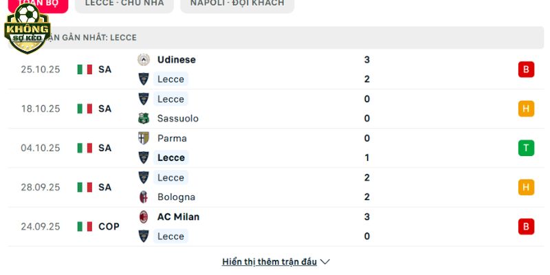 Trận đấu giữa Lecce vs Napoli vào giữa tuần này là cuộc đối đầu đầy cảm xúc và áp lực. Napoli vừa giành chiến thắng thuyết phục 3-1 trước Inter Milan, qua đó chấm dứt chuỗi trận thua gần đây. Về phía đội chủ nhà, Lecce đang trải qua cuộc chiến sinh tồn khốc liệt, chỉ giành được 6 điểm sau 8 trận đấu. Hãy cùng Không Sợ Kèo nhận định!