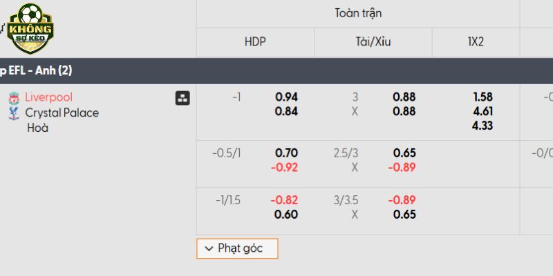 Tỷ lệ kèo Liverpool vs Crystal Palace