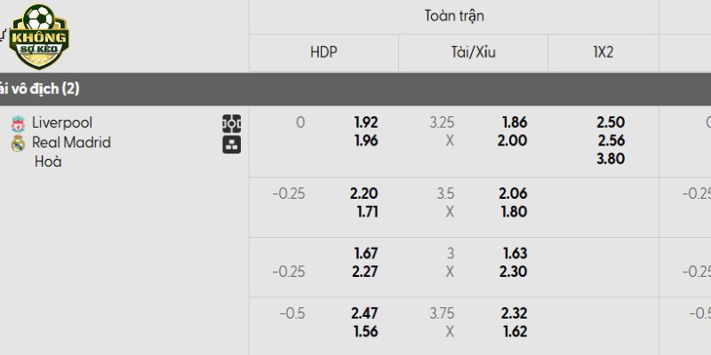 Tỷ lệ kèo Liverpool vs Real Madrid