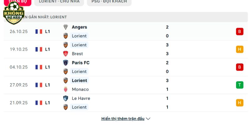 Phong độ Lorient vs PSG