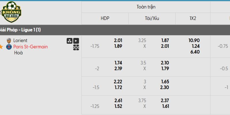 Tỷ lệ kèo Lorient vs PSG