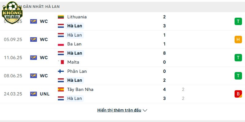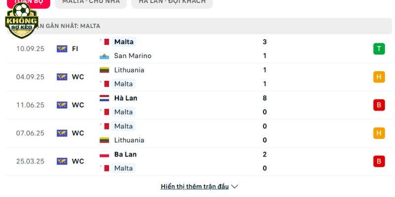 Hà Lan có thành tích đối đầu tuyệt đối, với trung bình 5 bàn thắng mỗi trận, tạo ra sự khác biệt lớn về tâm lý và đẳng cấp. Malta đã thua tất cả 6 lần đối đầu trước Hà Lan trong lịch sử. Lần chạm trán gần nhất hồi đầu năm nay, Hà Lan đã hủy diệt Malta với tỷ số 8-0. Thống kê này cho thấy sự chênh lệch đẳng cấp quá lớn.